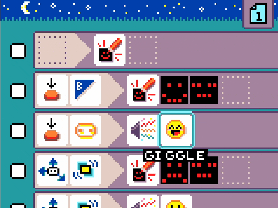 The screen has a limited resolution and a fixed 16 color palette, so even a single pixel can make a huge difference. Within these constraints, I needed to ensure icons were didactic, playful, and (most importantly) grounded to a system mapped directly to the physical hardware.